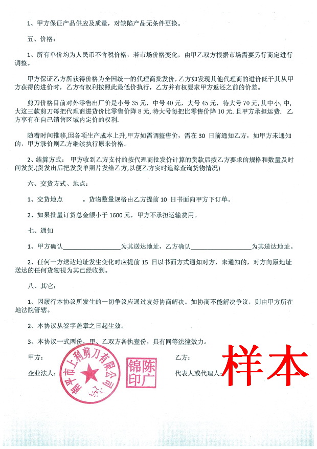 全國各地代理商代理合同樣本